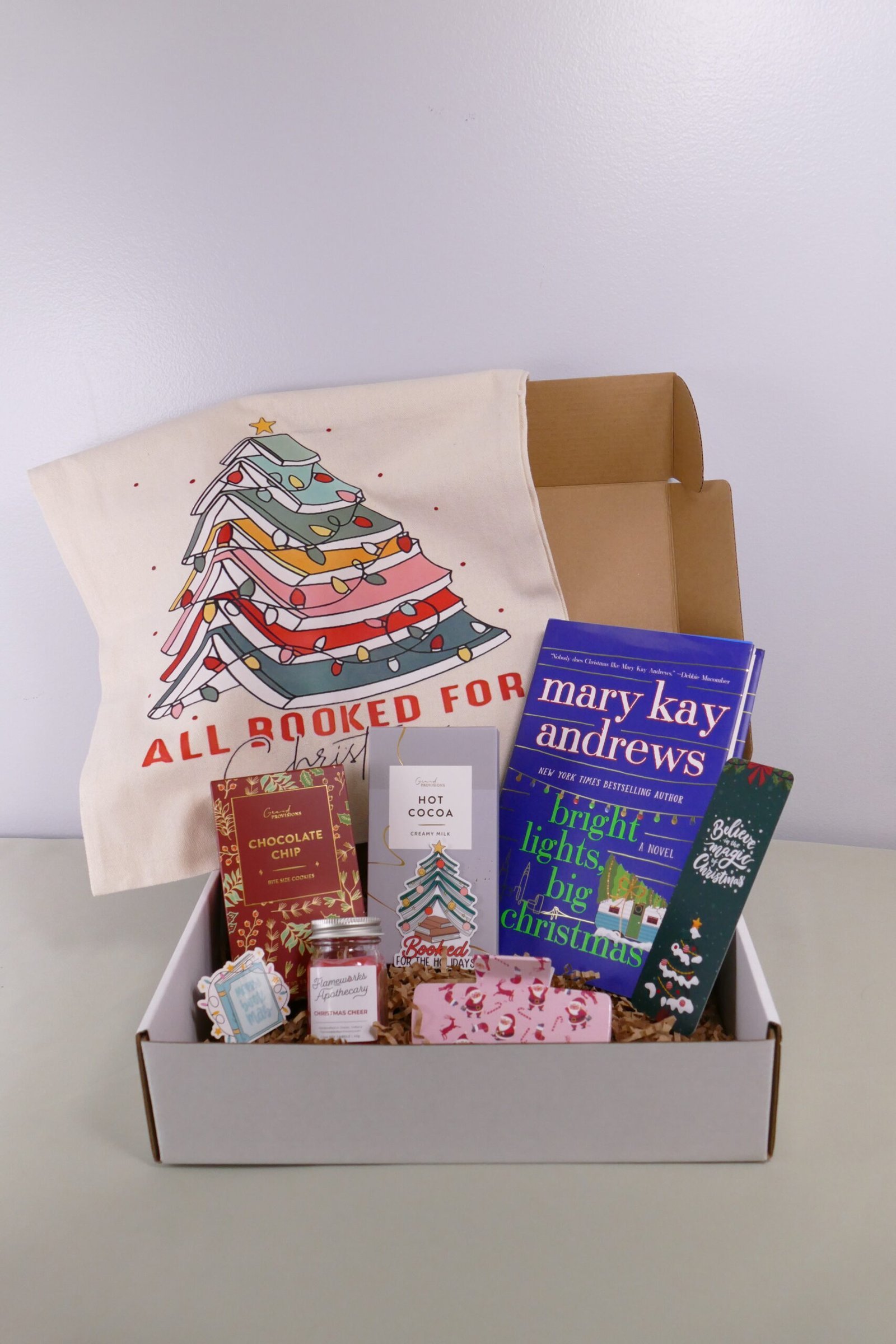 This generously curated box captures all the cozy magic of a Christmas romance—from the festive candle scents that evoke a Greenwich Village corner at Christmas to the warmth of hot cocoa and cookies enjoyed in a vintage camper. The practical tote bag carries your holiday treasures just like Kerry carries hope to New York, while the vintage hair claw adds a touch of timeless Christmas charm. Each abundant item connects to Kerry’s journey of finding home, love, and belonging in the most unexpected place. Perfect for kicking off your holiday reading season or gifting to the romance reader on your list who deserves to be spoiled.